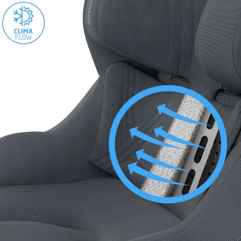 Je kind blijft het hele jaar door koel, fris en comfortabel dankzij de ventilatiepanelen, het ademende foam en de mesh bekleding van de autostoel.