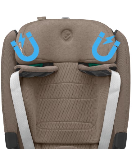 Het 5-punts veiligheidsharnas heeft magische magneten in de schoudervullingen om het harnas uit de weg te houden, zodat je je kind zonder moeite kunt installeren.