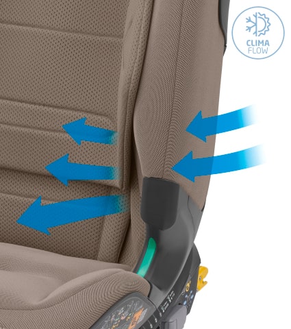 - Speciale ClimaFlow-panelen en ademende bekleding bevorderen de luchtcirculatie, zodat je kind altijd comfortabel is en de juiste temperatuur heeft.