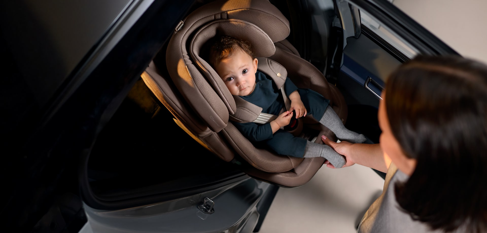 De revolutionaire SlideTech®-technologie, in combinatie met de 360°-rotatie met één hand en het easy-in-harnas, maakt het gemakkelijker dan ooit om je kind in - en uit de auto te krijgen.