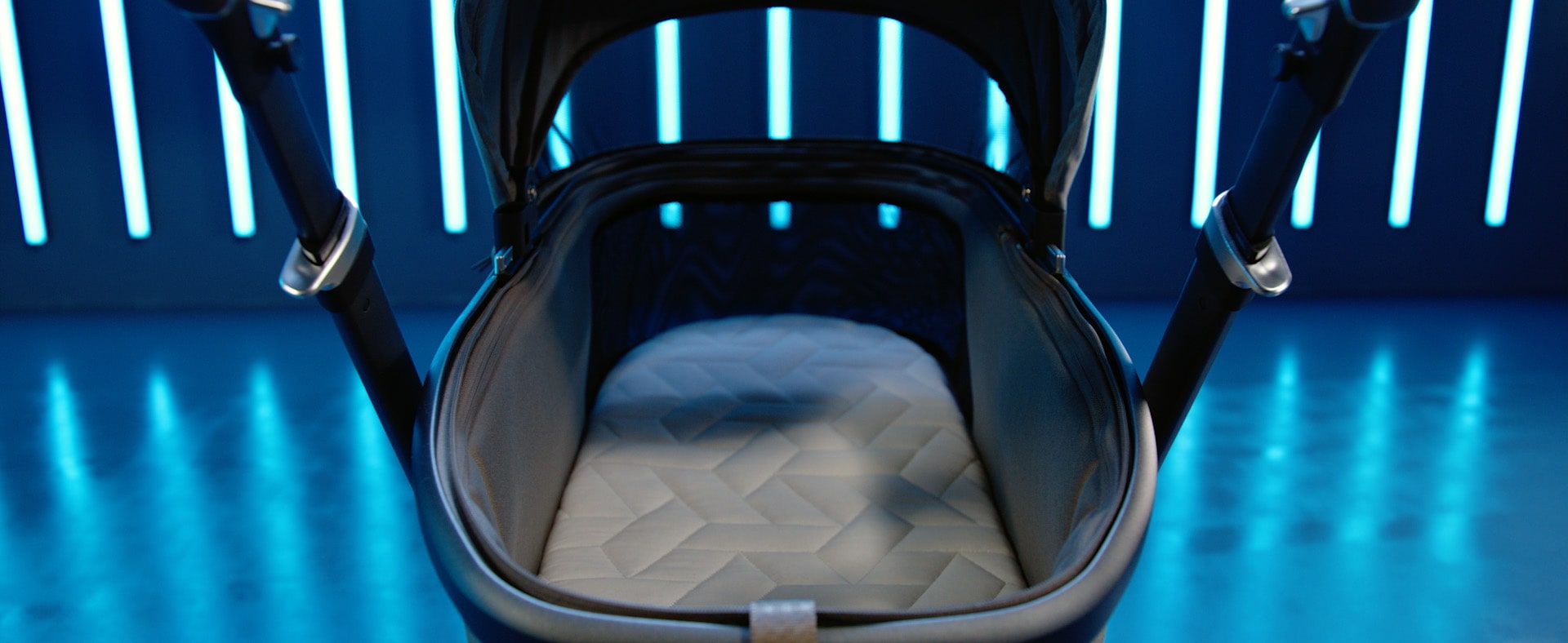 Laat ons je door alle kenmerken leiden die deze baanbrekende kinderwagen jou gezin te bieden heeft. Klik op de hotspots voor een volledige lijst met functies.
