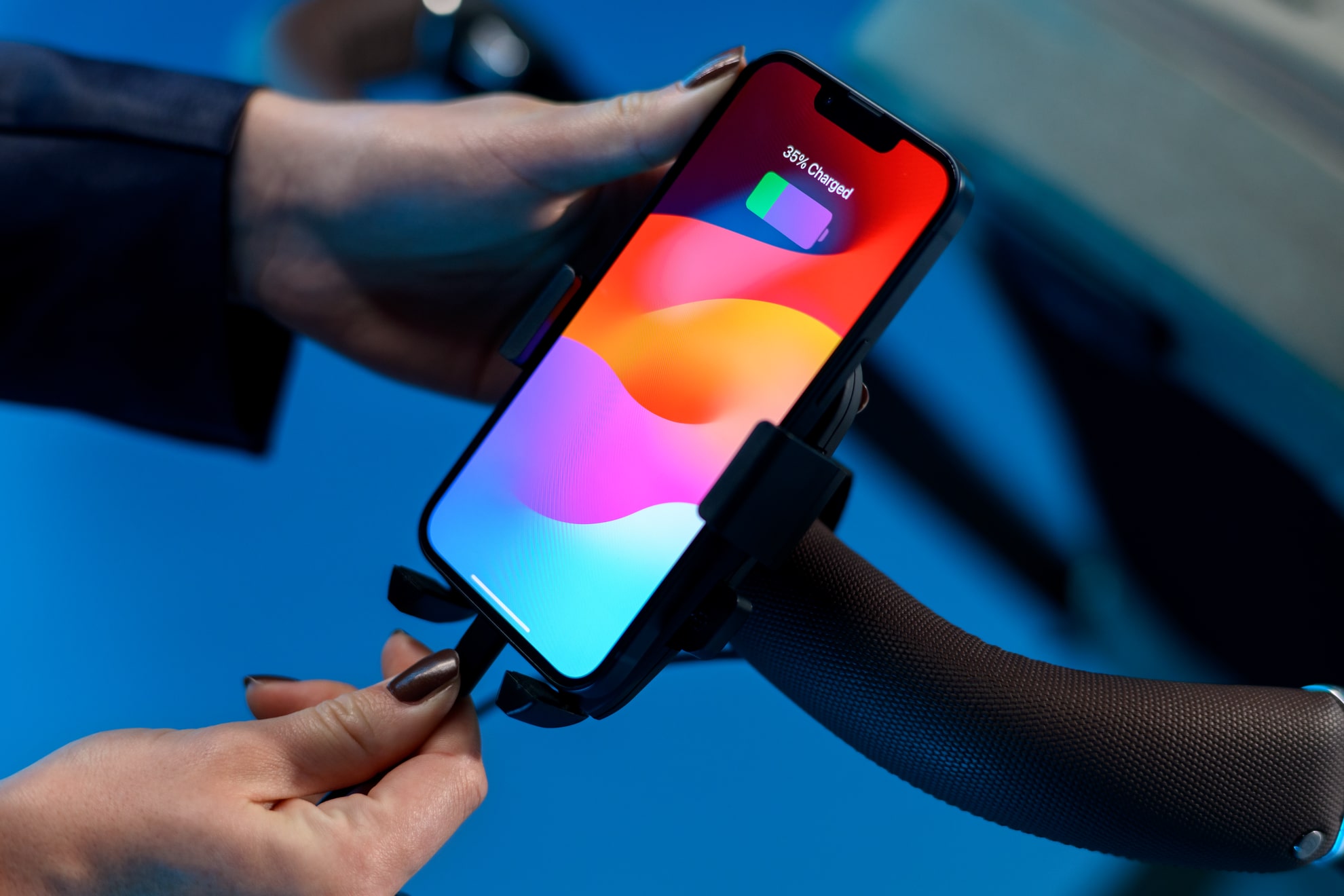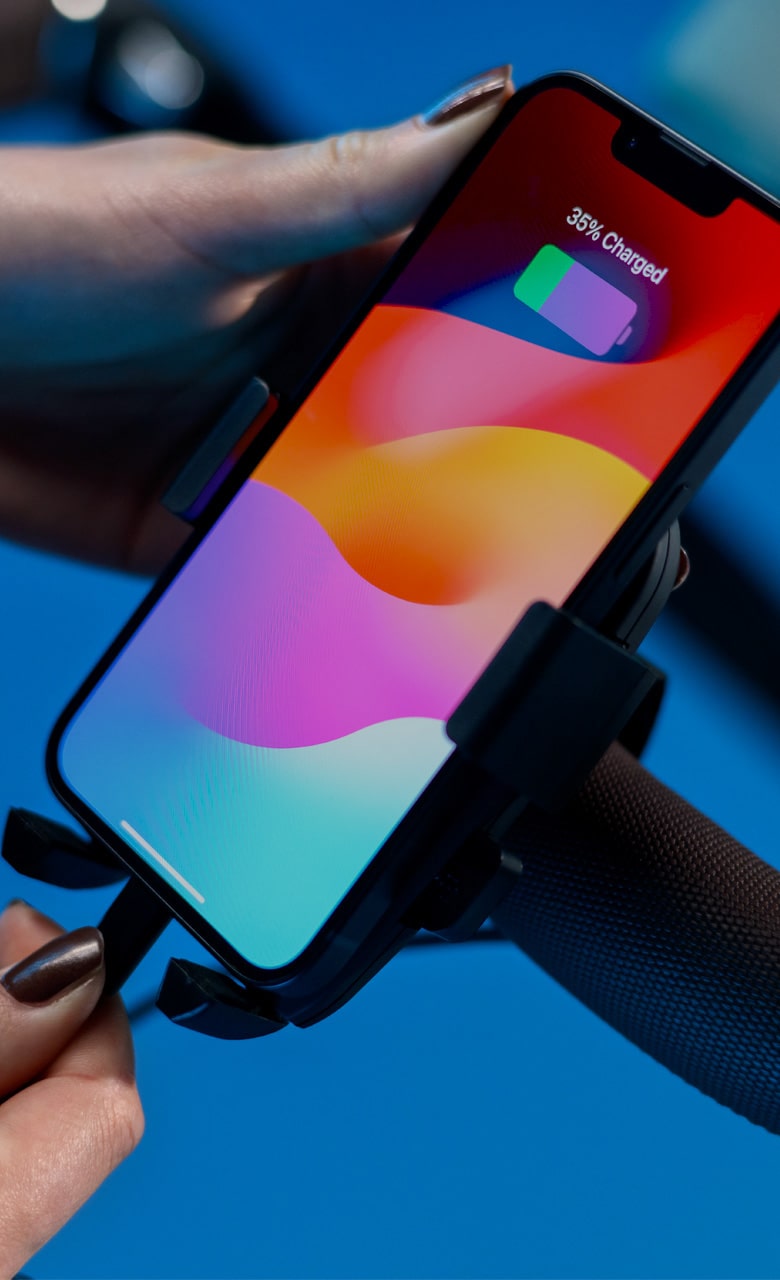 Blijf altijd verbonden. Je sluit je telefoon gewoon aan tijdens het wandelen en de geïntegreerde powerbank zorgt ervoor dat de batterij van je telefoon nooit leeg raakt.