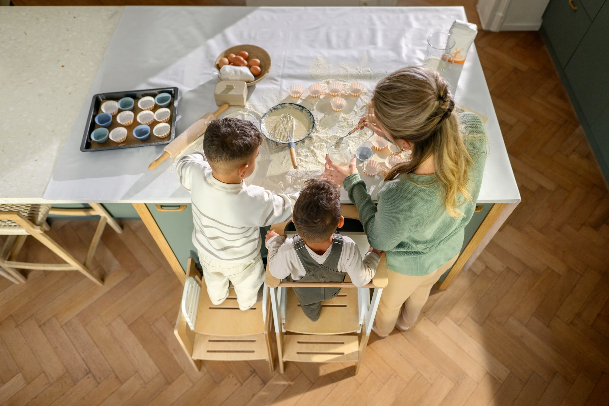 De keuken is de perfecte omgeving voor je kind om zijn of haar nieuwsgierigheid met een leertoren verder te ontwikkelen. De leertoren overbrugt op een veilige manier de afstand naar het aanrecht. Zo kan je kind ze samen met jou eenvoudige taken uitvoeren.