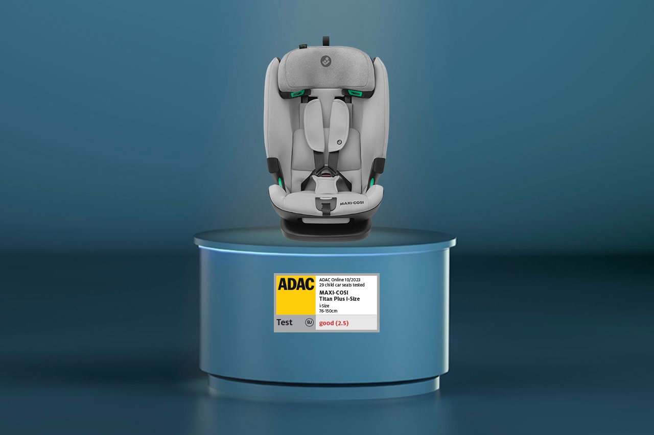 De Titan Plus i-Size, onze autostoel voor meerdere leeftijden, kreeg een uitstekende score van "GOOD" (2.5) tijdens de botsproeven van de ADAC (in de categorie voor meerdere leeftijden; van 15 maanden tot 12 jaar). Onze autostoel behaalde de titel van testwinnaar, net als zijn grote broer, de Titan Pro i-Size. Beiden behoren tot de meest beschermende autostoeltjes voor meerdere leeftijden. Onze Titan Plus i-Size blinkt niet alleen uit in veiligheid, maar ook in comfort en gemak.