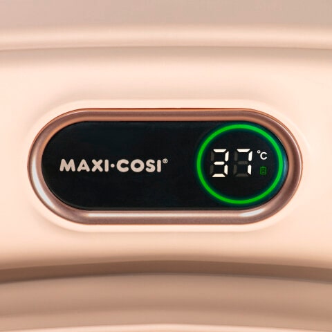 - De kleurindicator geeft aan of de temperatuur veilig en comfortabel is voor je baby. Blauw betekent te koud, rood betekent te warm en groen betekent precies goed (35-38 °C).