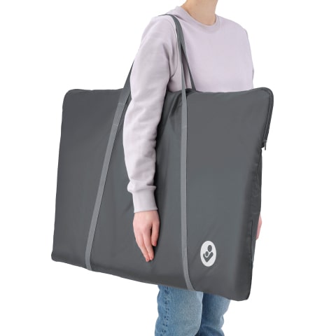 De Tori is een ultracompacte, lichtgewicht co-sleeper die je eenvoudig mee kunt nemen tijdens uitstapjes buitenshuis. Je klapt hem gewoon plat in en neemt hem mee in de handige reistas.