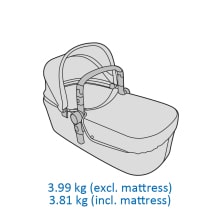 - ABS: 0,09%; PA: 54,46%; PP: 0,18%; Q235: 5,38%; Staal: 3,94%; AL: 33,57%; POM: 2,38% | Textiel: Zonnekap: 6,25% polyurethaan, 93,75% polyester; Gordelhoes: 3,5% polyurethaan, 76,5% polyester; Mand: 100% polyester; Reiswieg: 100% polyester; Zitje: 100% pol